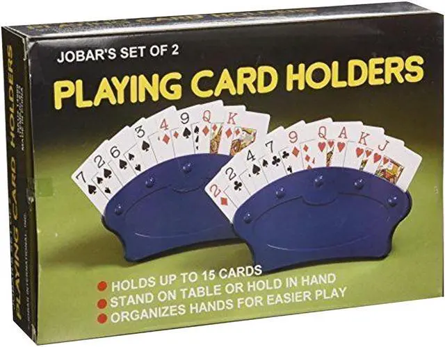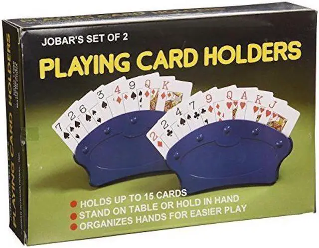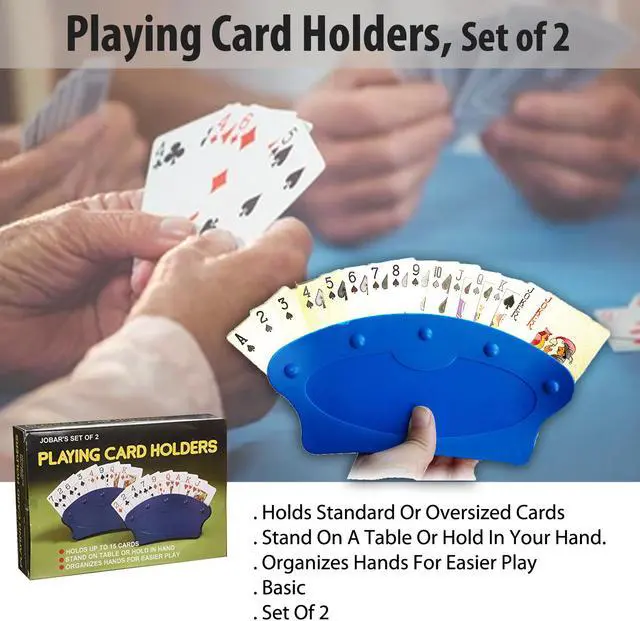 SOTV Playing Card Holders, available in a set of 2, are designed to accommodate both standard and oversized cards. Made from durable, Prop65-certified ABS composite plastic with a no-slip EVA felt grip, these holders ensure a stable, hands-free gaming experience. Ideal for children, adults, and seniors, they alleviate hand cramps and make card games like Canasta, Poker, Uno, and more enjoyable. Measuring 8.5 x 5.6 x 2 inches and weighing 8 ounces, these blue card holders are perfect for family game nights.