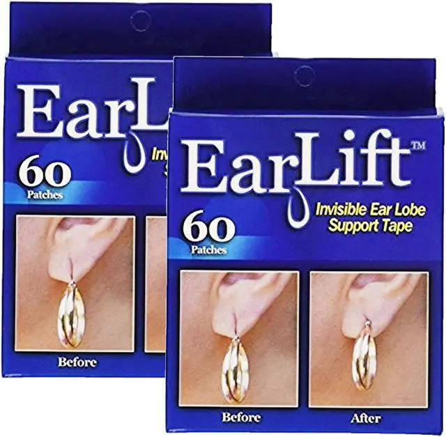 Ear Lifts for your earlobes Are your earlobes sagging torn or damaged. Do your earrings wobble tilt or not sit properly. Then you need Ear Lifts the remarkable earring support solution for pierced ears. Ear Lifts are invisible and work virtually all types of pierced earrings studs hoops dangles and hooks. Fix your stretched and droopy ear lobe problem instantly. Just peel and press and wear all of your favorite earrings in comfort and confidence. Ear Lift is an invisible disc (patch) made of a medical-grade hypoallergenic (skin-friendly) adhesive that instantly secures earrings by taking weight off the earring hole relieving the ear lobe of pressure.