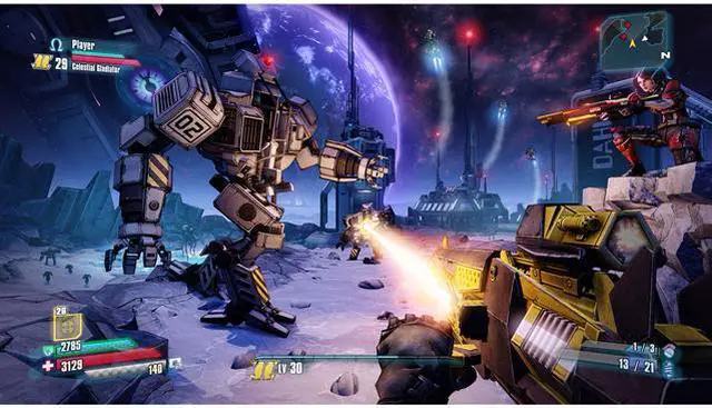 | Feature | Shoot 'n' Loot your way to the Moon! Discover the story behind Borderlands 2 villain, Handsome Jack, and his rise to power. Taking place between the original Borderlands and Borderlands 2, the Pre-Sequel gives you a whole lotta new gameplay featuring the genre blending fusion of shooter and RPG mechanics that players have come to love. Float through the air with each low gravity jump while taking enemies down from above using new ice and laser weapons. Catch-a-ride and explore the lunar landscape with new vehicles allowing for more levels of destructive mayhem. - BRING MAYHEM TO THE MOON Feel the moon's low gravity with every jump and stomp. Cause mayhem with new weapons equipped with ice and laser capabilities! New enemies offer a space-based twist! - THE RISE OF HANDSOME JACK Witness Handsome Jack's rise to power. Dive deep into the origins of iconic Borderlands villains. Turn the tables and experience Handsome Jack's side of the story. - A NEW CLASS OF ANTI HEROES Play as one of four new character classes, including Wilhelm the Enforcer, Nisha the Lawbringer, and Athena the Gladiator. Play as a combat-ready Claptrap prototype for the first-time! Experience the gray morality of working alongside Handsome Jack. |