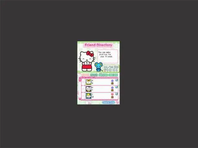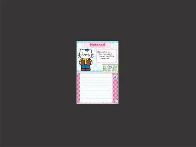 | Features | Discover how to use your Nintendo DS in a whole new way with the adorable Hello Kitty! Hello Kitty Daily is the perfect tool to manage your busy life and stay organized in style! Join the iconic feline companion as you track your daily activities, update your friend directory, and write in your diary and more. This new way to use the DS brings PDA functions to a new audience in a familiar and approachable way. Timetable: A planner for classes and other important activities Alarm Clock Profile: To customize the DS with personal information Budget: To keep track of daily finances Calculator Diary: A complete agenda for important dates Friend directory: An address book to keep track of all your friends Notepad: An easy and quick way to take notes |