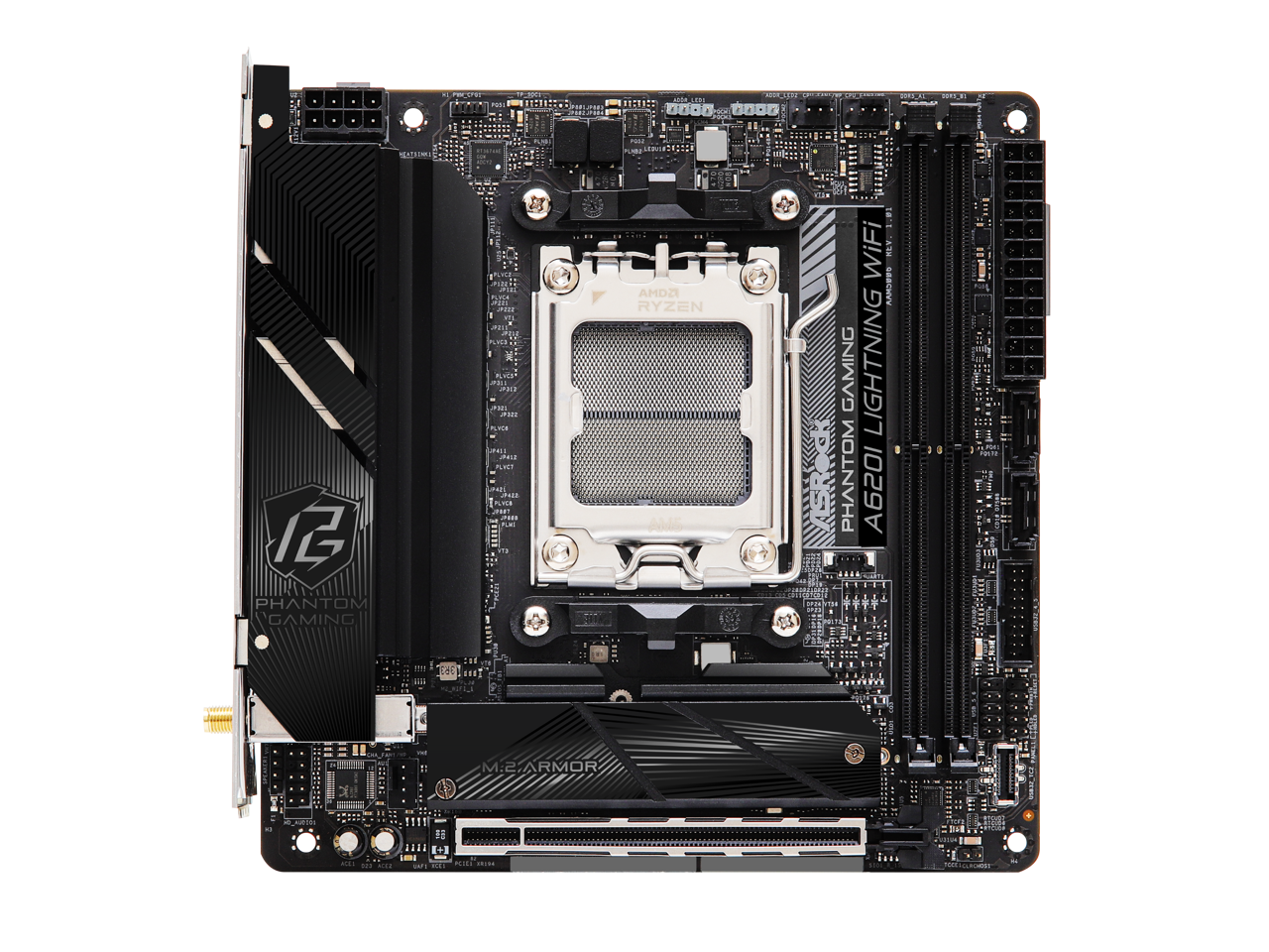 ASRock A620I LIGHTNING WIFI AM5 Ryzen7000 AMD A620 SATA 6Gb/s Mini-ITX Dual Channel DDR5 - 2.5G LAN, 802.11ax Wi-Fi 6E Module PCIe 4.0 x16 Slot Motherboards - AMD