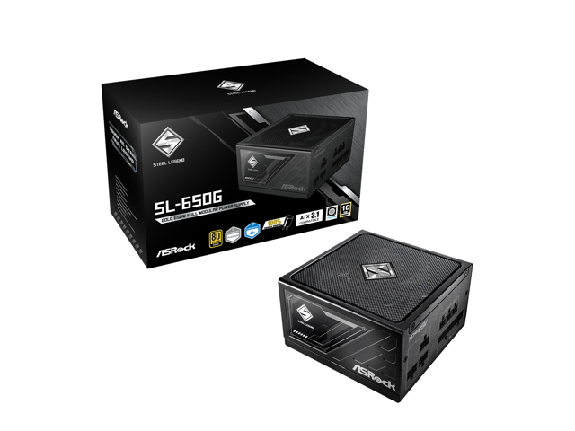 ASRock Steel Legend SL-650G 650W 80 PLUS GOLD & Cybenetics PLATINUM Full Modular Power Supply, ATX3.1 Ready, 10 Years Warranty