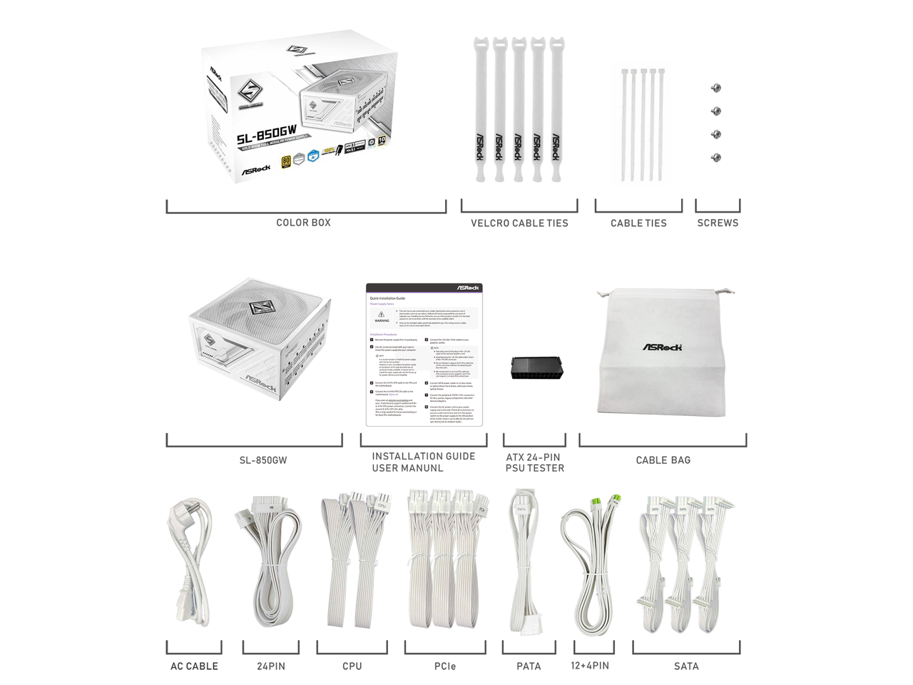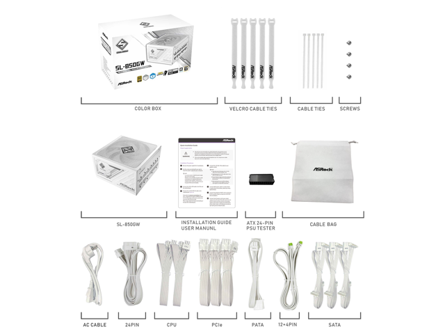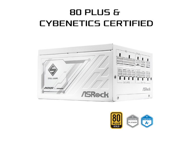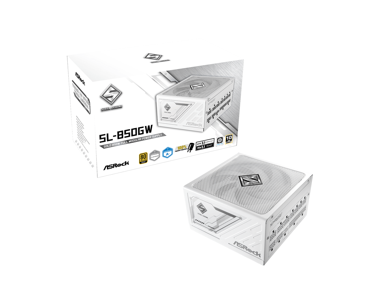 ASRock Steel Legend SL-850GW 850W 80 PLUS GOLD & Cybenetics PLATINUM Full Modular Power Supply, ATX3.1 & PCIe5.1 Ready with Dual Color 12V-2x6 Cable, 10 Years Warranty, White Edition