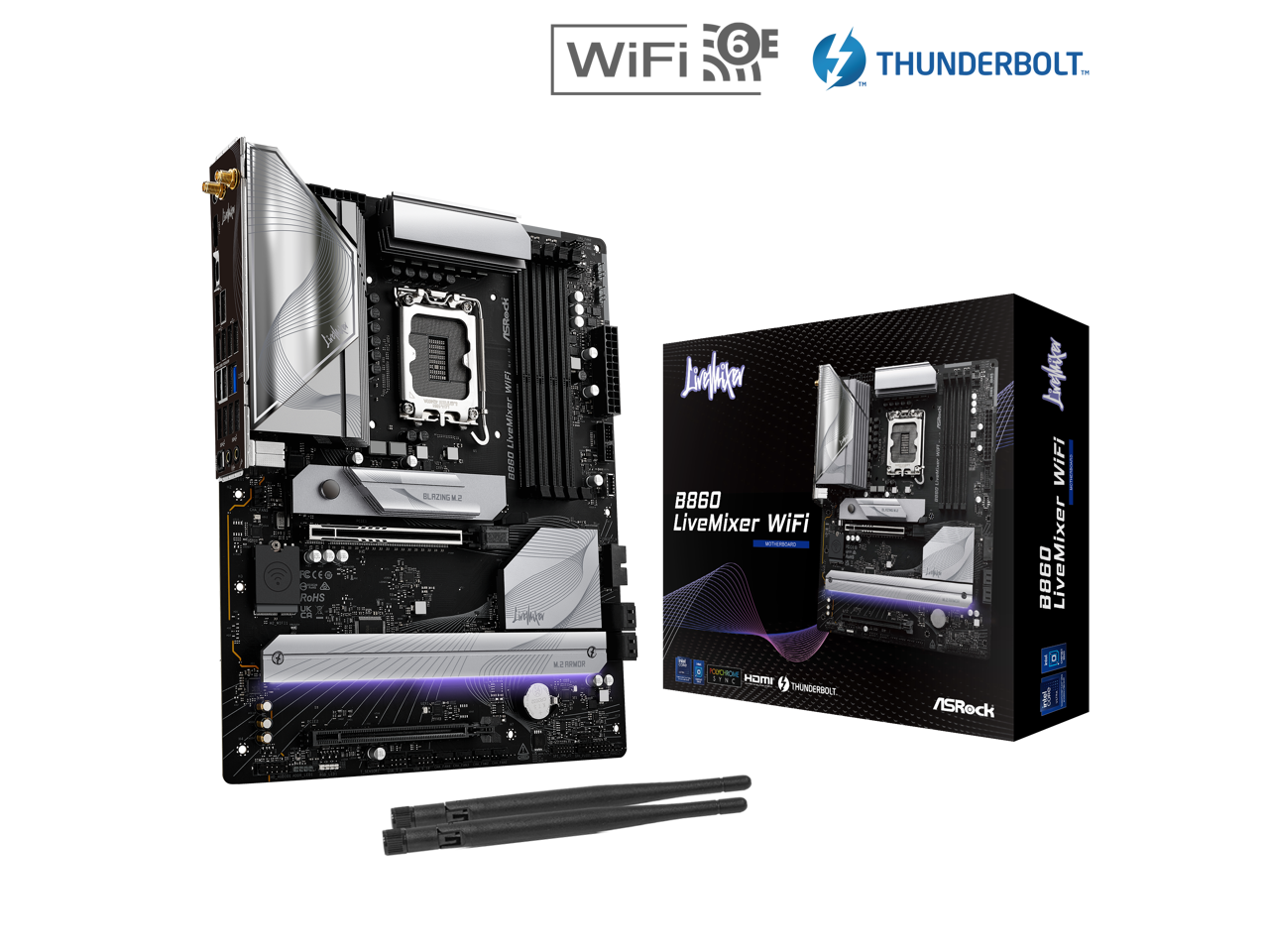ASRock B860 LiveMixer WiFi LGA 1851 Intel B860 SATA 6Gb/s DDR5 Intel Core Ultra ATX Motherboard