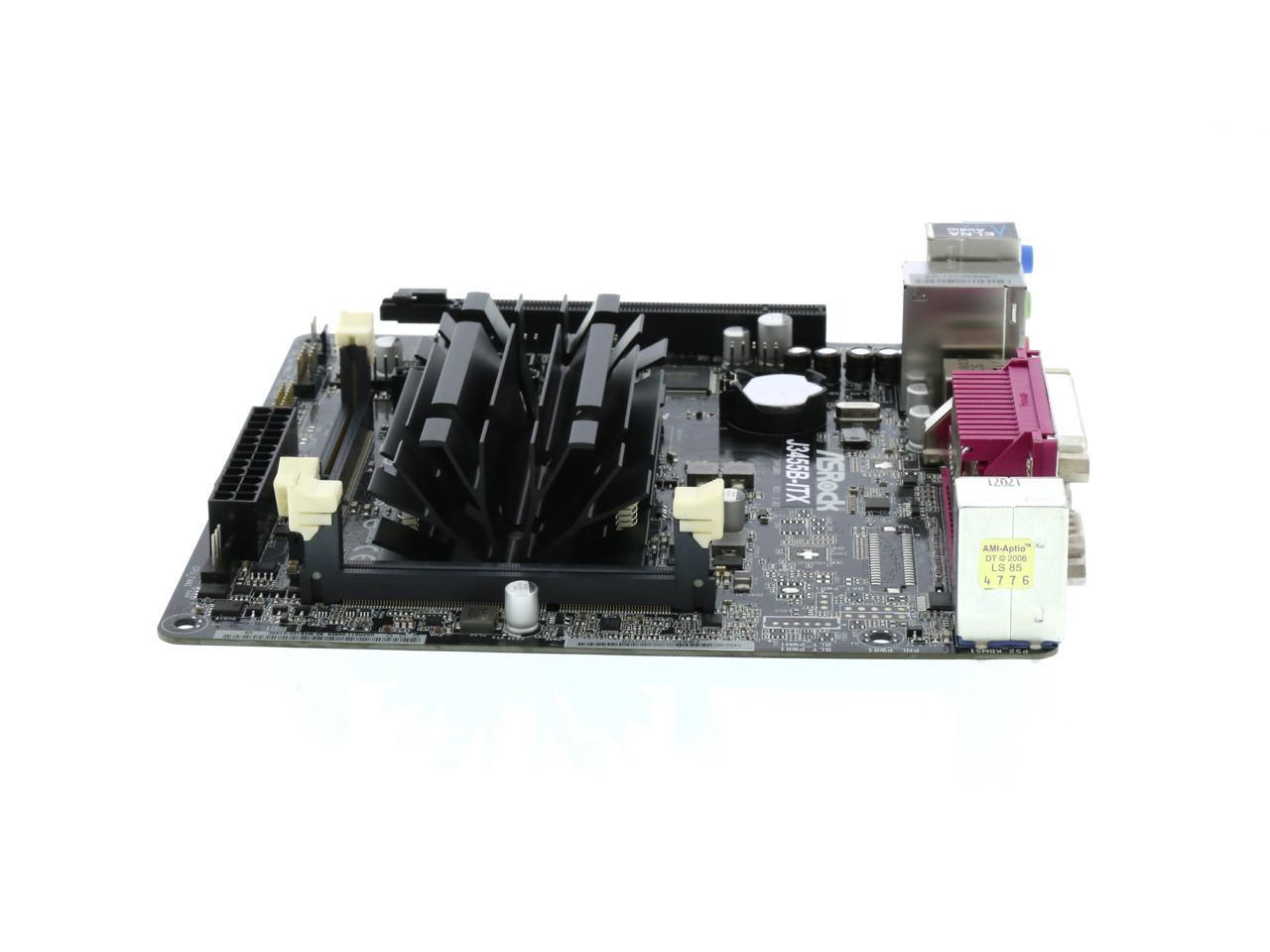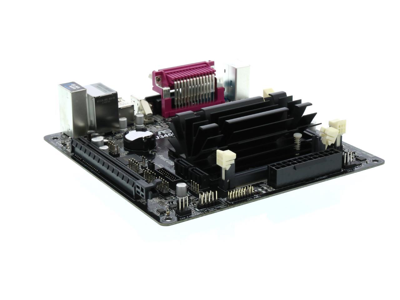 ASRock J3455B-ITX motherboard is ideal for building your DIY NAS server, HTPC, or compact home PC. The integrated J3455 processor packs quad cores, operates at up to 2.30 GHz frequency, and is covered and cooled by a large passive cooler. Two SO-DIMMs and a PCIe x16 slot (x2 mode) can accommodate your needs today and tomorrow. Despite of the ITX form factor, essential connectivity options are all included, such as USB 3.0, VGA, HDMI, Parallel and COM. The premium components and high quality build ensure exceptional quality, stability and durability you can count on in various conditions.