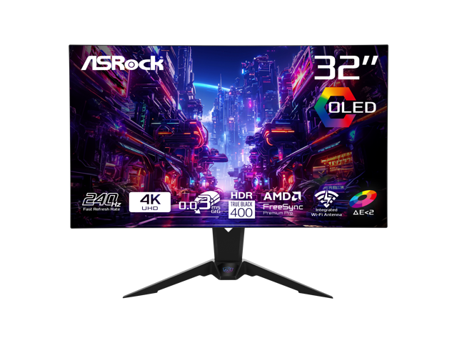 ASRock Phantom Gaming Monitor 31.5" 240Hz 4K/UHD (3840x2160) Flat WOLED, 0.03ms (GTG), 99% DCI-P3 / 132% sRGB Color Space, 2 x HDMI 2.1, 2 x DisplayPort 1.4, 3 x USB, PGO32UFS
