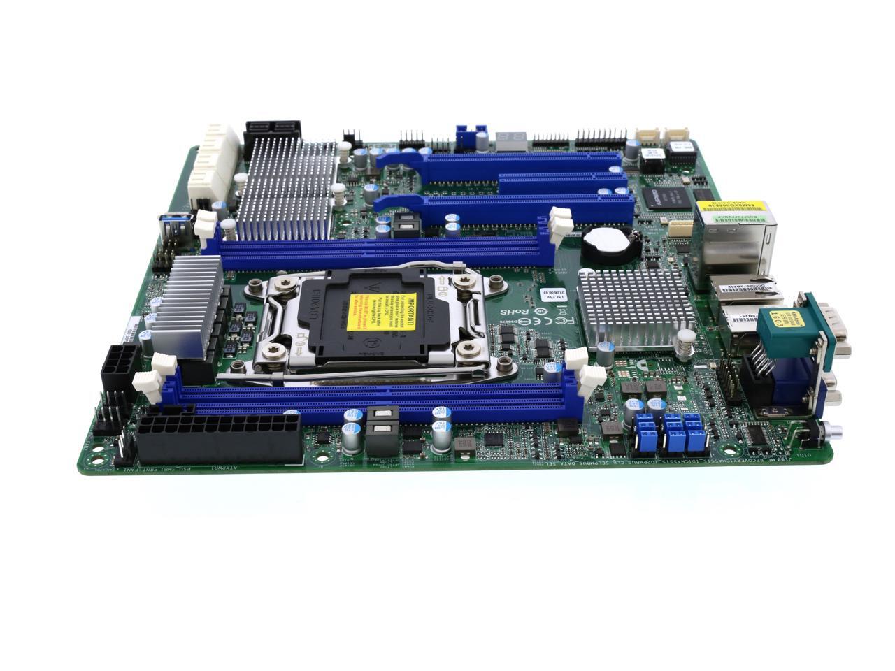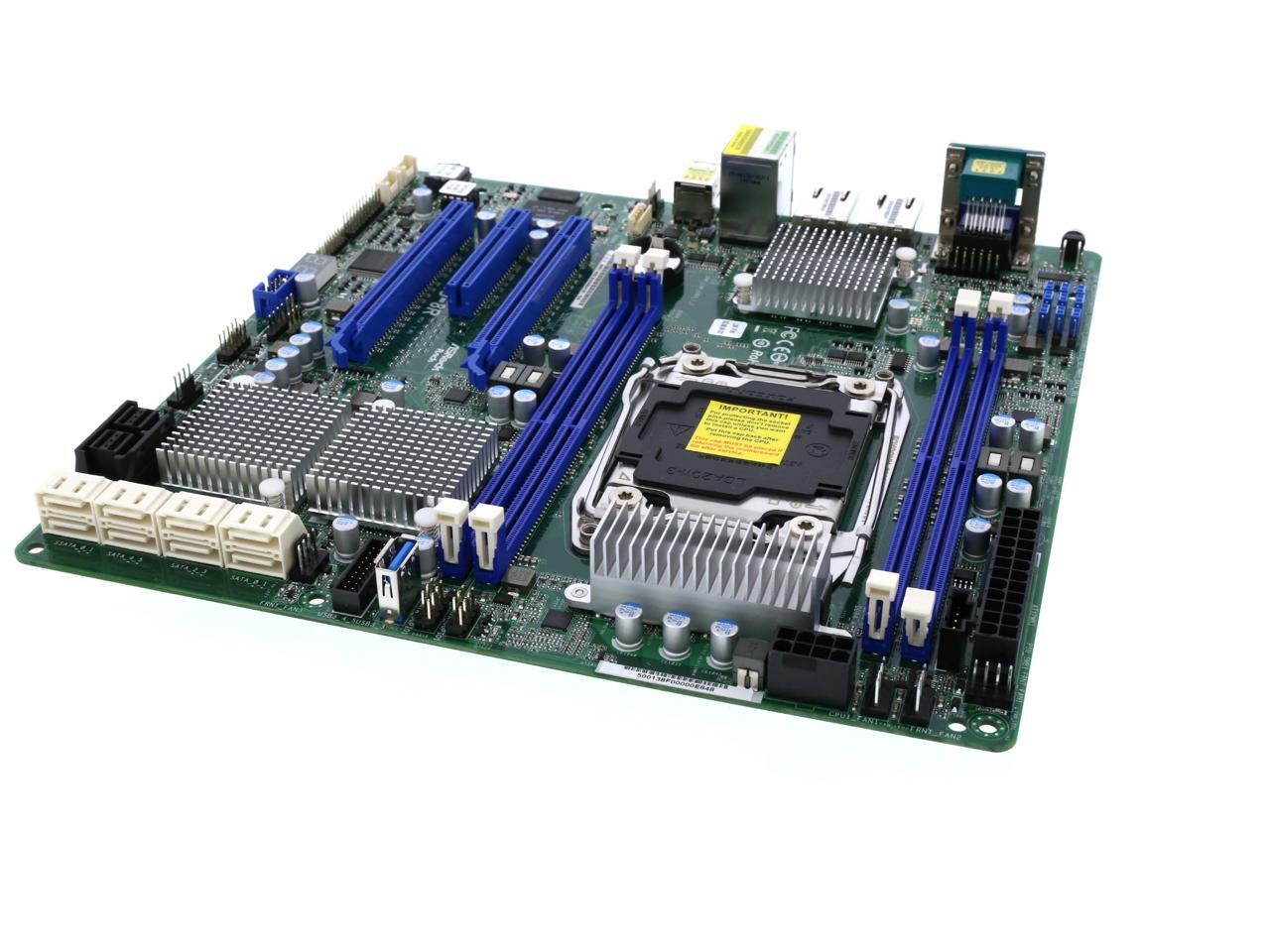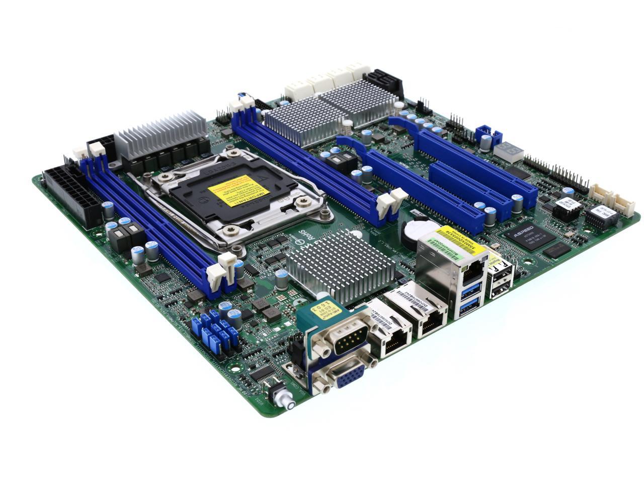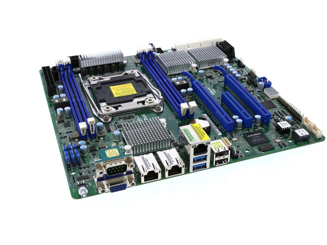 Features | UATX 9.6''x9.6'' Single Socket LGA 2011 R3 Intel Xeon processor E5-1600/2600 v3 series Supports Quad channel DDR4 2133/1866 RDIMM/LR DIMM/NV DIMM, 4 slots Support 8 SATA3 by C612 and by 8 SAS3 LSI 3008 Supports 2 x PCIe 3.0 x16, 1 x PCIe 3.0 x 8 ASPEED 2400. Integrated IPMI 2.0 with KVM and Dedicated LAN (RTL8211E) Supports Intel Dual GLAN by Intel i350 |
