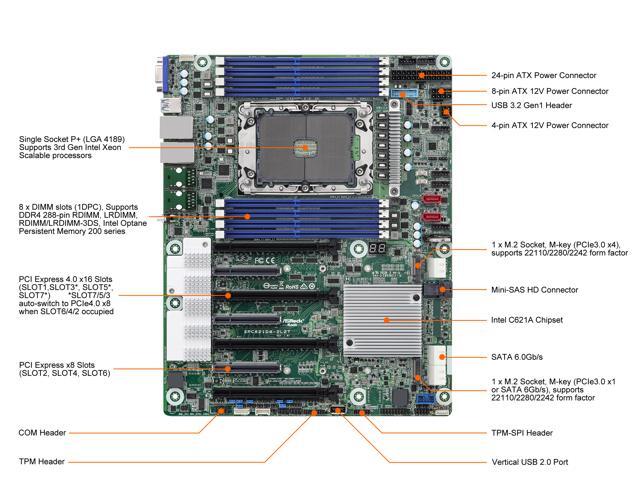 AsRock Rack SPC621D8 ATX Server Motherboard Single Socket P+ (LGA 4189) 3rd Gen Intel® Xeon® Scalable Processors C621A