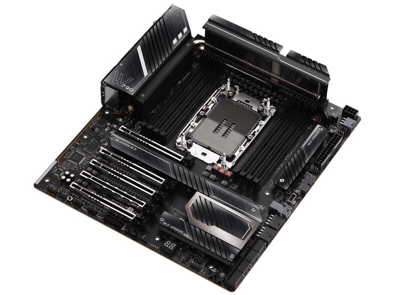 ASRock W790 WS Intel® W790 (LGA 4677) CEB workstation Extended ATX Motherboard 4 PCIe 5.0 x16, Dual Marvell AQUANTIA® 10 GbE and Intel® i225LM 2.5 GbE LAN, 2 USB4 Thunderbolt™ 4 Type-C