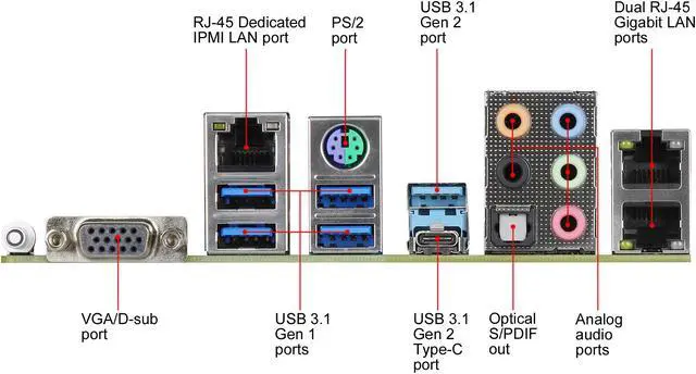 | RJ45 | 2 x RJ45 10G base-T(by Intel X550) + 1 x RJ45 Dedicated IPMI LAN port |