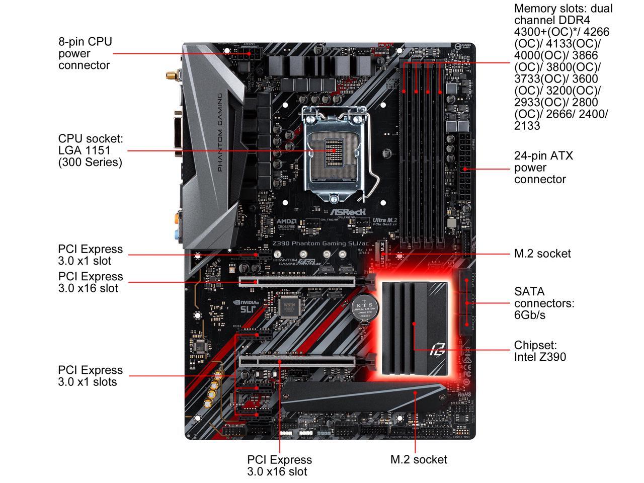 ASRock Z390 PHANTOM GAMING SLI/ac LGA 1151 (300 Series) Intel Z390 HDMI SATA 6Gb/s USB 3.1 ATX Intel Motherboard ONLY @NEWEGG
