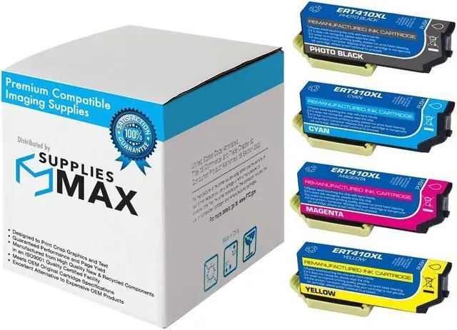 SuppliesMAX High Yield Inkjet Combo Pack compatible replacement for Epson T410XL520. Yields up to 650 pages at 5% coverage. Premium ink delivers vibrant color and sharp text for photos, presentations, and everyday documents. Engineered for reliable performance, long-lasting results, and seamless installation in supported 110V U.S.-based printers.