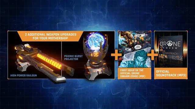 Get a wealth of additional content to upgrade your Drone Swarm base game to “Drone Swarm Deluxe Edition”