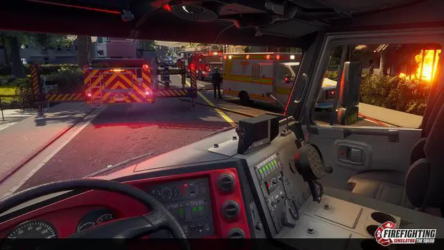 Firefighting Simulator lets you experience what it means to fight fires up close as an active part of a major US city's firefighting team. Discover over 30 diverse deployment locations and complete exciting missions that span a 15k acres large townscape inspired by the North American Westcoast. Operate faithfully reproduced Rosenbauer America fire trucks, extinguish fires, and rescue civilians in need – together with up to three friends in the co-op multiplayer or with the help of AI team members in the single player mode.