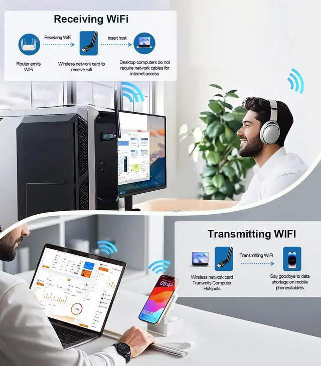 Built-in AP Mode – Turn your desktop into an instant Wi-Fi hotspot. Share your wired Ethernet connection with phones, laptops, or other devices—no router needed. Perfect for travel or setting up a quick temporary network.