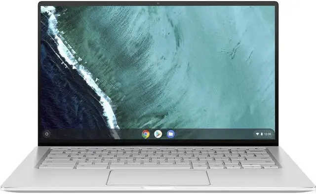 The 14" C434TA-DS384T 64GB Multi-Touch 2-in-1 Chromebook Flip from ASUS is a compact laptop with a 14" display featuring 5mm NanoEdge bezels within a 13" chassis. It also has a 360° hinge, so users can adjust it to best fit their viewing preferences. Specs-wise, it's equipped with a 1.1 GHz Intel Core m3-8100Y dual-core processor, 8GB of LPDDR3 RAM, 64GB of eMMC storage, and integrated Intel UHD graphics. Other integrated features include 802.11 ac Wi-Fi, Bluetooth 4.0, a microSD card reader, USB Type-A and Type-C ports, an HD webcam, speakers, microphones, and a combo audio jack.