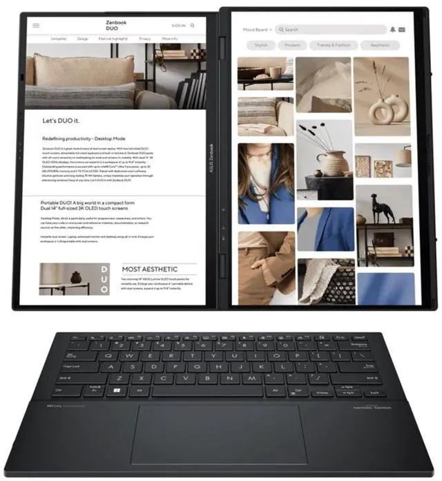 Dual 14.0 inch, 2K WUXGA (1920 x 1200) OLED Touch Displays w/ 16:10 aspect ratio, 400nits