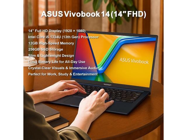 ASUS Vivobook 14 14" FHD Laptop - Intel 13th Core i5-1334 - 12GB Memory, 256GB SSD (Quiet Blue) with Accessory Bundle