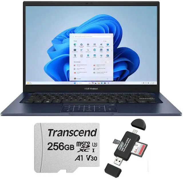 ASUS VIVOBOOK 14 14" FHD LAPTOP - INTEL 13TH CORE I5-1334 - 12GB MEMORY, 256GB SSD (QUIET BLUE) + TRANSCEND 256GB 300S UHS-I MICROSDXC MEMORY CARD + VIDPRO USB 2.0 TYPE-C MICROSD AND SD CARD READERASUS Vivobook 14 14" FHD Laptop - Intel 13th Core i5-1334 - 12GB Memory, 256GB SSD (Quiet Blue)Turn everyday tasks into something special with Vivobook 14, your essential tool for getting things done easier, anywhere. Its completely user-friendly too, with its 180° lay-flat hinge and physical webcam shield. Make all your days more enjoyable with Vivobook 14!