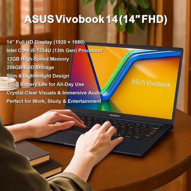- ASUS Vivobook 14 14" FHD Laptop - Intel 13th Core i5-1334 - 12GB Memory, 256GB SSD (Quiet Blue)