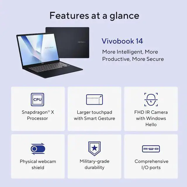 ASUS Vivobook 14 14" FHD+ Laptop - Snapdragon X - 16GB Memory, 512GB SSD (Q