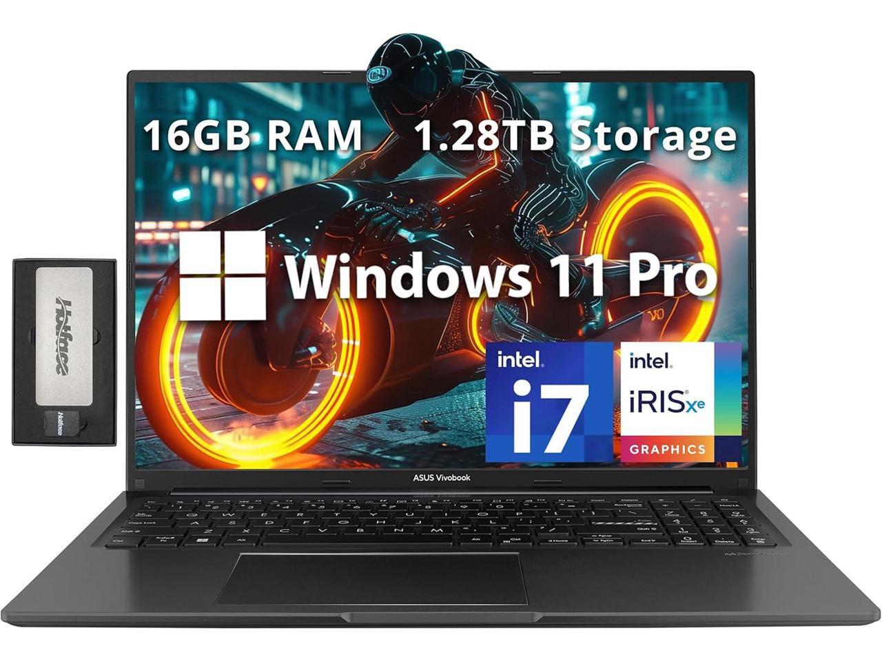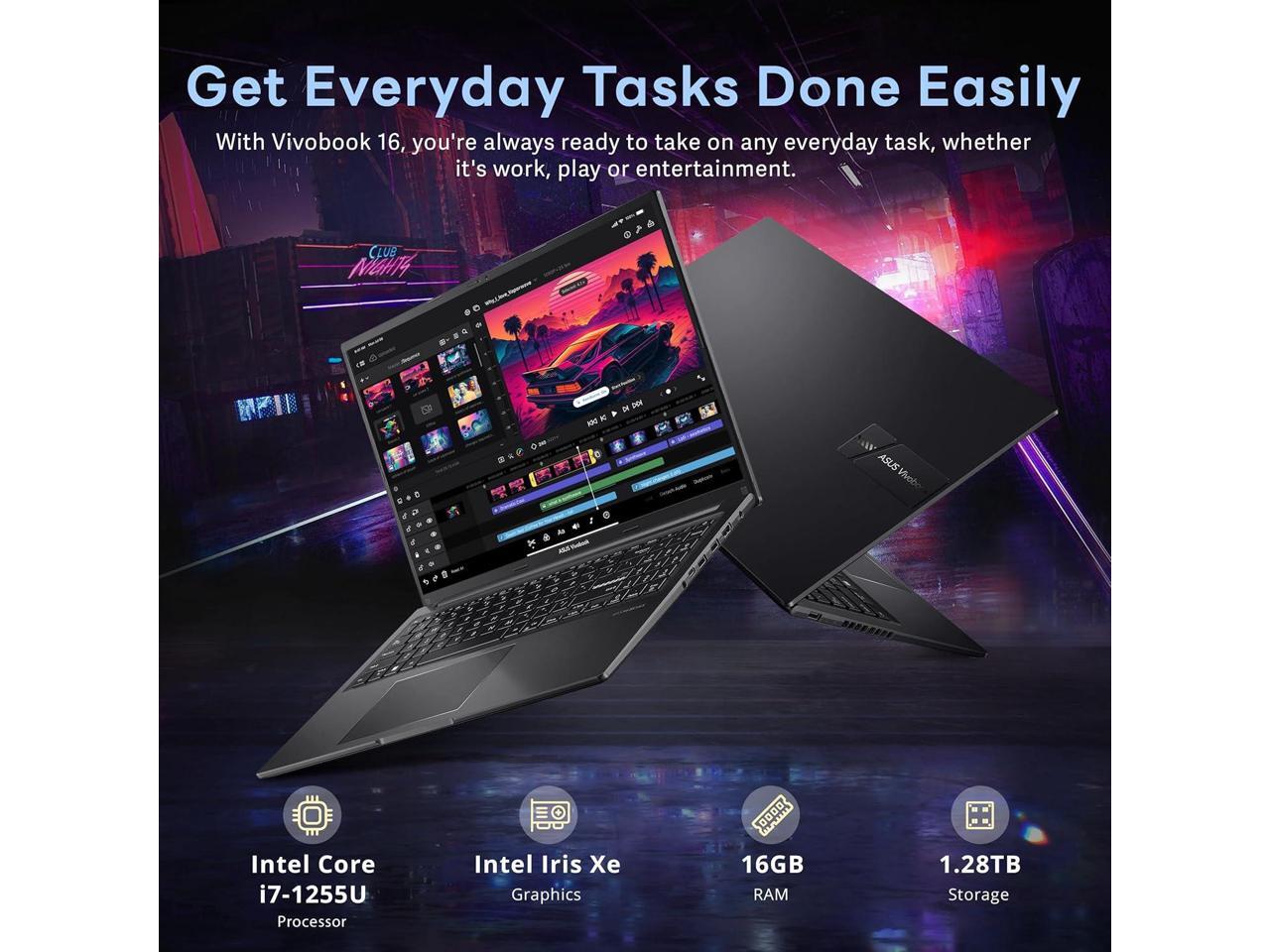 ASUS Vivobook 16" WUXGA Laptop, Intel i7-1255U, 16GB RAM, 1.28TB Storage(1TB SSD+288GB Docking Station Set), Intel Iris Xe Graphics, Numeric Keypad, WiFi 5, Win 11 Pro, Black