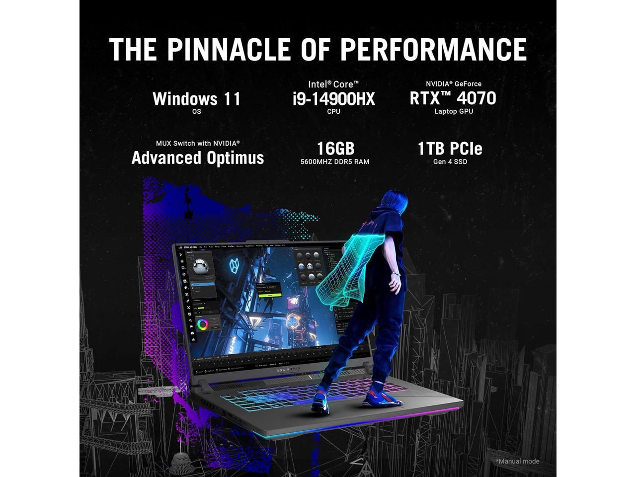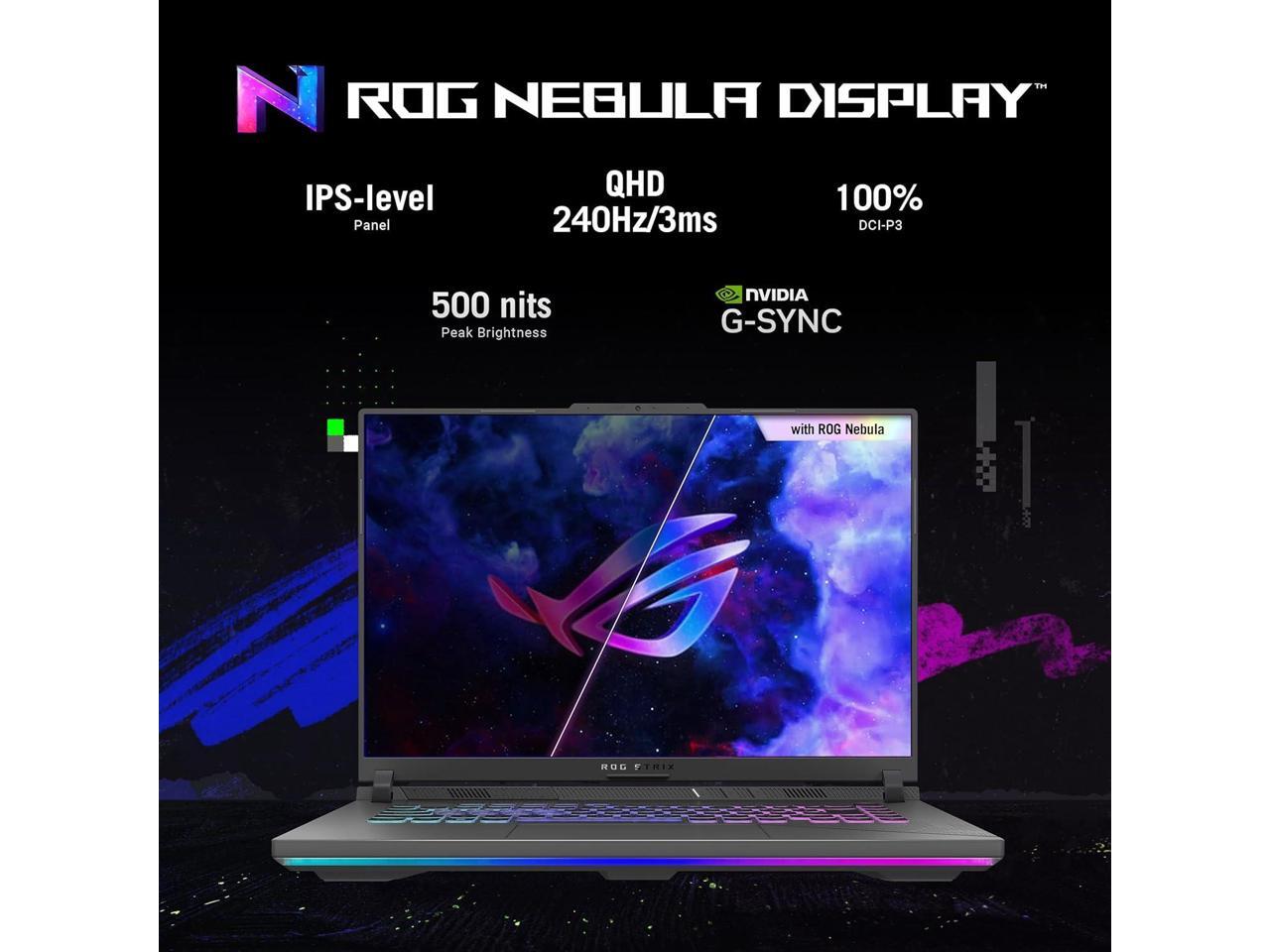 ASUS ROG Strix G16 (2024) Gaming Laptop, 16 ROG Nebula Display 16:10 QHD 240Hz, NVIDIA® GeForce RTX 4070, Intel® Core i9-14900HX, 16GB DDR5-5600, 1TB PCIe Gen4 SSD, Wi-Fi 6E, Win 11, G614JIR-AS94