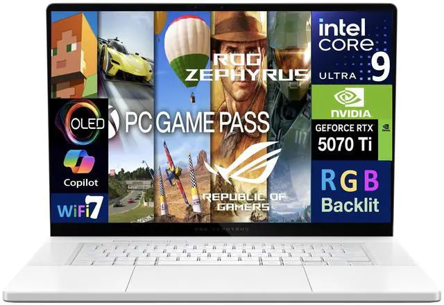Model: ASUS Form/Style: StandardModel No: Processor: 15th Gen Ultra 9-285H 2.90GHz Processor (upto 5.4GHz, 24MB Cache, 16-Cores, 16-Threads, 6 Performance-cores)Memory: 32GB OnBoard LPDDR5X RAMGraphics: GeForce RTX 5070 Ti 12GB GDDR7 Dual (Integrated+Dedicated) Graphics, VR Ready Storage: 2TB PCIe SSD (Solid State Drive)Operating System: Windows 11 Pro-64Display: 16.0" WQXGA (2560x1600) 240Hz 16:10 DisplayConnectivity: 802.11be, Bluetooth 5.4, Ports/Slots:, HDMI, Thunderbolt 4, USB 3.2 Type-C, SD Card Reader, Headphone/Microphone Combo JackInput/Output: Webcam, White, RGB KB Standard Keyboard, Battery: 240W PSU, 2-Cell 90 WHr BatteryOther Features, Color: Weight: 4.2lbProduct Dimensions (WxLxH): 9.75 IN x 14.00 IN x 0.75 IN