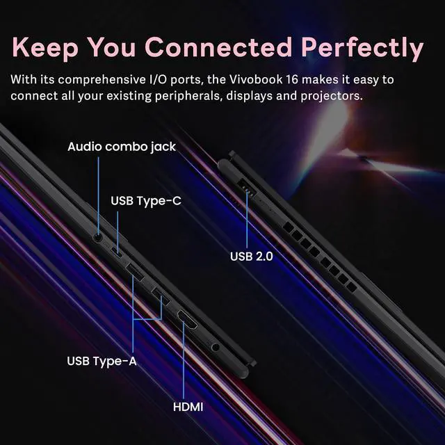 16" WUXGA Anti-glare DisplayThe anti-glare screen ensures comfortable viewing, enhancing your visual experience to the fullest. Your business and pleasure pursuits will certainly be improved by the fascinating clarity and brightness.