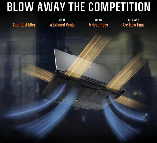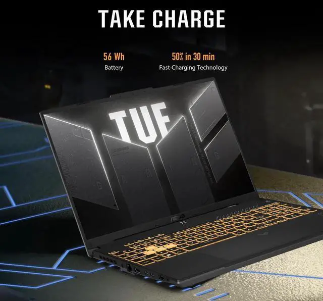 The TUF F16 is a powerhouse primed for every gaming adventure. Dive headfirst into Windows 11 Home, fueled by a 13th Gen Intel Core 5 210H processor and an NVIDIA GeForce RTX 4050 laptop GPU with NVIDIA Advanced Optimus. Its timeless design, highlighted by a sleek embossed TUF logo, exudes subtle styling, while the FHD 144Hz display with 100% sRGB color delivers captivating visuals that draw you right into the heart of the action. With 16GB of DDR5 memory and 512GB PCIe Gen4 SSD, multitasking becomes easy. Military-grade durability ensures peak performance anywhere you go. The TUF Gaming F16 features Arc Flow Fans, 4 exhaust vents, 5 dedicated heat pipes, and an anti-dust filter that optimizes performance without compromising on noise. Elevate your gaming experience even further with Dolby Atmos and Hi-Res audio that makes the TUF Gaming F16 the ultimate companion for immersive, high-performance gaming.