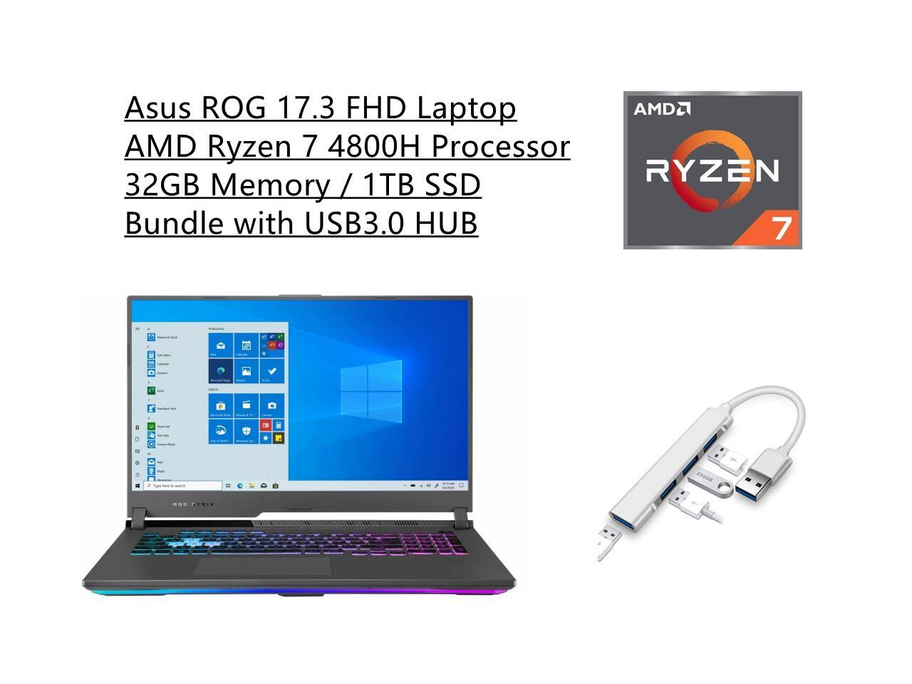 New Asus ROG 17.3 FHD Laptop | AMD Ryzen 7 4800H Processor | 32GB Memory | 1TB SSD | Nvidia GeForce RTX 3060 | Backlit Keyboard | Windows 10 Home | Gray | Bundle with USB3.0 HUB