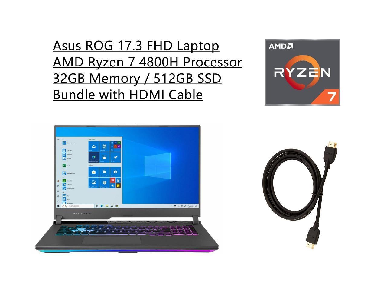 New Asus ROG 17.3 FHD Laptop | AMD Ryzen 7 4800H Processor | 32GB Memory | 512GB SSD | Nvidia GeForce RTX 3060 | Backlit Keyboard | Windows 10 Home | Gray | Bundle with HDMI Cable