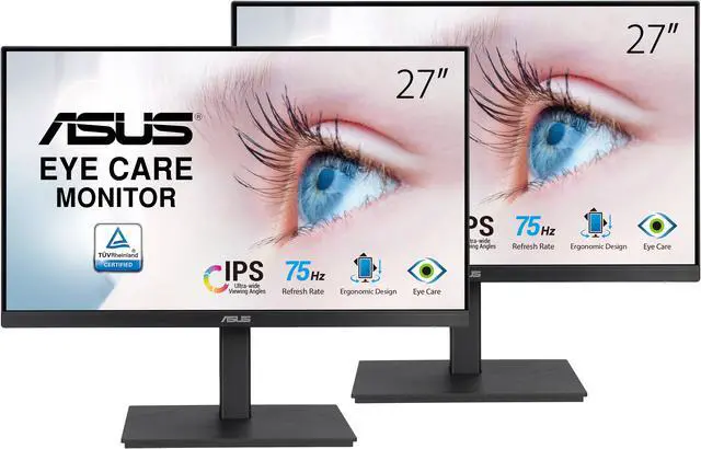 Model: ASUS VA27EQSB Color: BlackDisplay Size: 27"Resolution: Full HD (1920x1080)Refresh Rate: 75HzPanel Type Details: IPS, Anti-Glare Screen Video Ports: 2 x USB 3.2 Gen 1 Type-A, VGA, Display Port 1.2, HDMI 1.4 Aspect Ratio: 16:9Contrast Ratio: 1,000:1Built-In Audio: Built-in SpeakersResponse Time: 5 msViewing Angle: 178° (H) / 178° (V)Display Colors: 16.7 MillionBrightness: 300 NitsDisplay Pixel Pitch: 0.311mm (82 Pixels Per Inch)Additional Audio Ports: 3.5mm Audio OutputVESA Compatibility: 100x100mmEye Care Features: Low Blue LightAMD Freesync: YesFlicker Free Technology: YesAdjustments: Height Adjustment 5.9" / 150 mm, Rotation Adjustment 180° (-90 to 90°), Swivel Adjustment 360° (-180 to 180°), Tilt Adjustment -5 to 35° Product Dimensions (WxLxH): 24.15 IN x 8.91 IN x 20.62 IN Weight: 13.23lbmonitorwarinfo