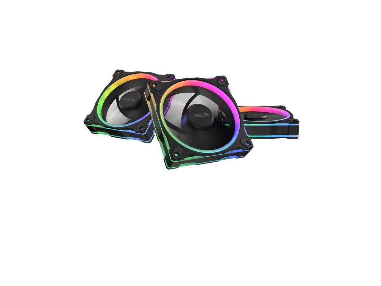 ASUS Prime MR120 ARGB fan black triple pack, 28mm extra-thick frame, quiet, high-performance cooling with PWM control, 20 ARGB LEDs with dual-sided frame lighting, Aura Sync compatibility