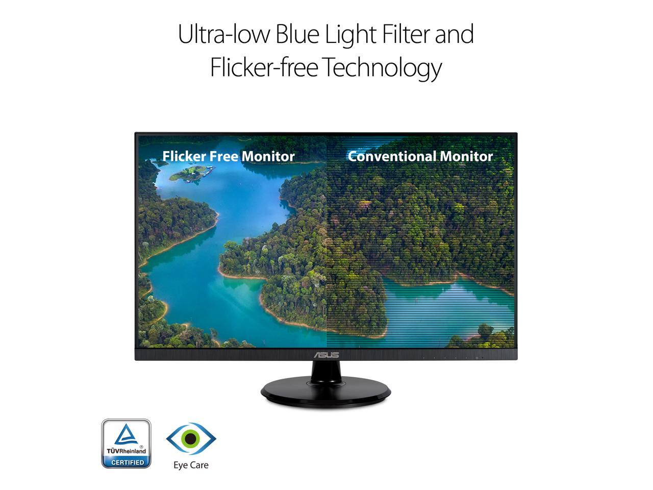 - ASUS Eye Care monitors feature TÜV Rheinland-certified Flicker-free and Low Blue Light technologies to ensure a comfortable viewing experience