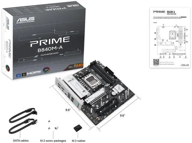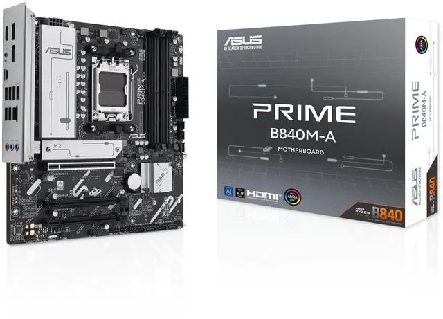 ASUS PRIME B840M-A-CSM - Motherboard - micro ATX - Socket AM5 - AMD B840 Chipset - USB-C 3.2 Gen 1, USB 3.2 Gen 1 - 2.5 Gigabit LAN - onboard graphics (CPU required) - HD Audio (8-channel) - ASUS Corporate Stable Model (CSM)