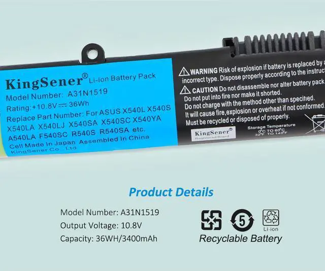 KingSener A31N1519 3400mAh/36WH Laptop Battery for ASUS X540 X540L X540LA X540LJ X540S X540SA X540SC X540YA A540 A540LA F540SC R540S R540SA