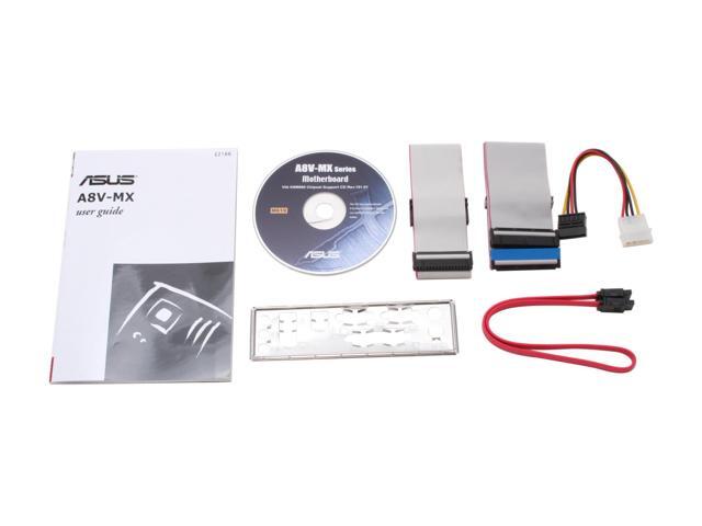 | Package Contents | A8V-MX User Manual Driver Disk Rear I/O Panel Shield IDE/PATA Cable FDD Cable SATA Cable 4-pin to SATA Power Cable |