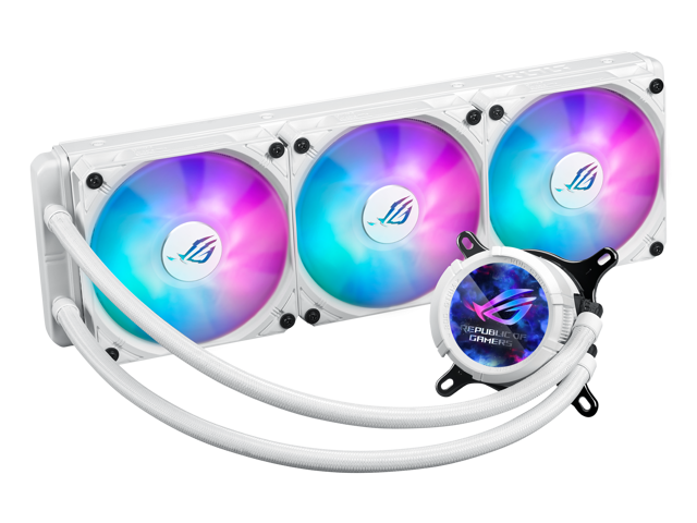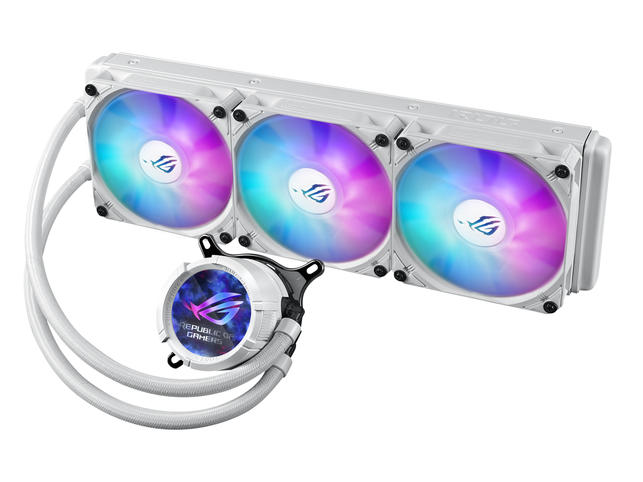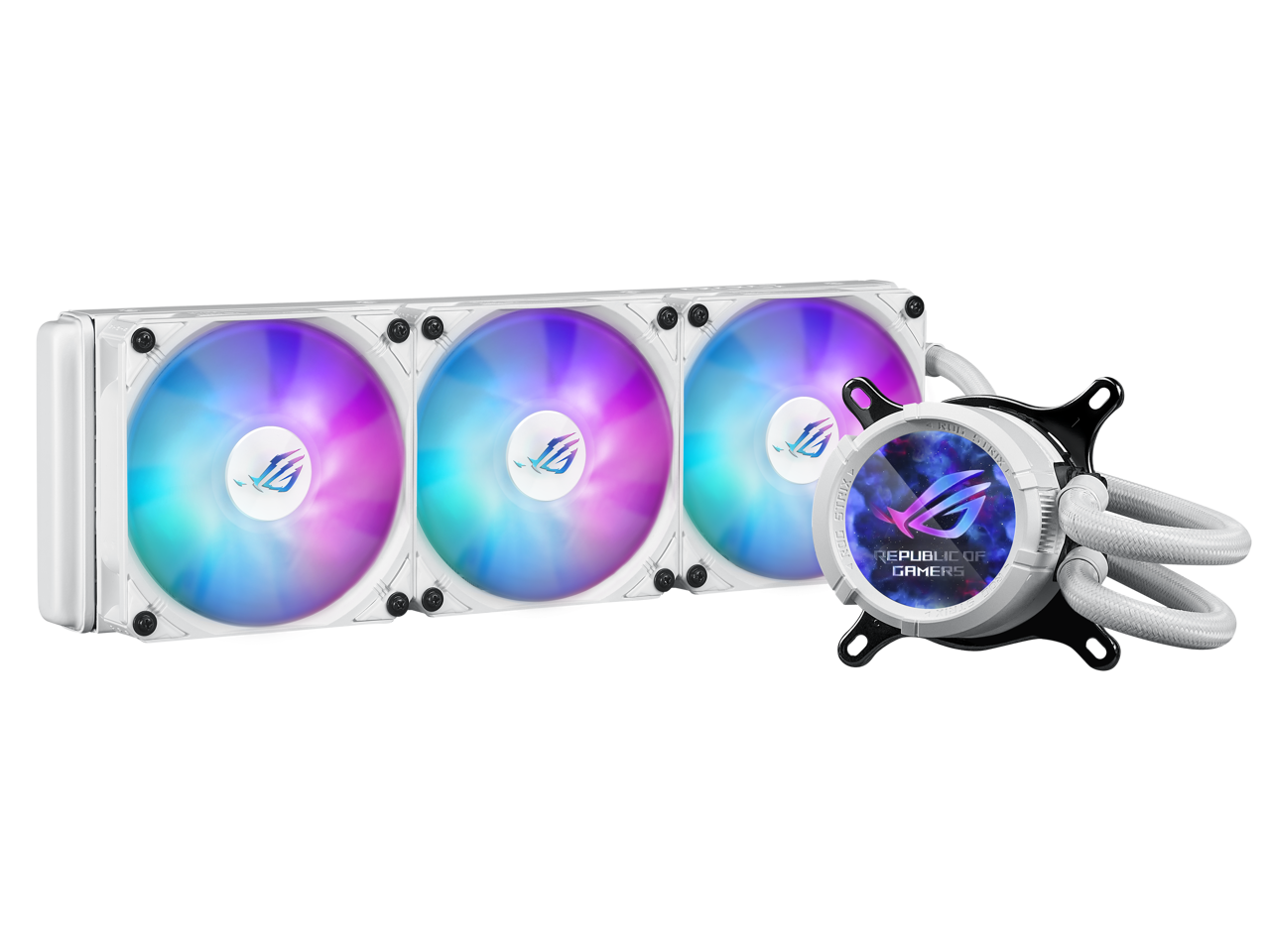- ASUS ROG STRIX LC III 360 ARGB LCD White Edition all-in-one CPU Cooler with Asetek's latest Gen7 v2 pump and ROG ARGB radiator fans, this liquid cooling solution effortlessly manages the thermal demands of AMD Ryzen™ and Intel® Core™ processors, unleashing boundless power. Effortlessly rotate and customize the LCD’s display.