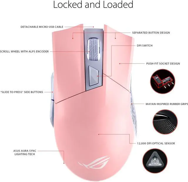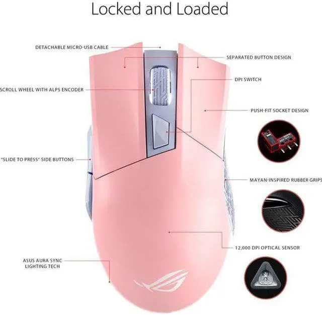 Get ready to lock your target and embrace victory with the ROG Gladius II Origin PNK LTD optical gaming mouse. The ROG Gladius II Origin PNK LTD has an advanced 12000 DPI optical sensor for fast response and precise control, ergonomic right-handed design to ensure you stay comfortable during extended gaming sessions and Aura Sync lighting technology to outshine the competition.