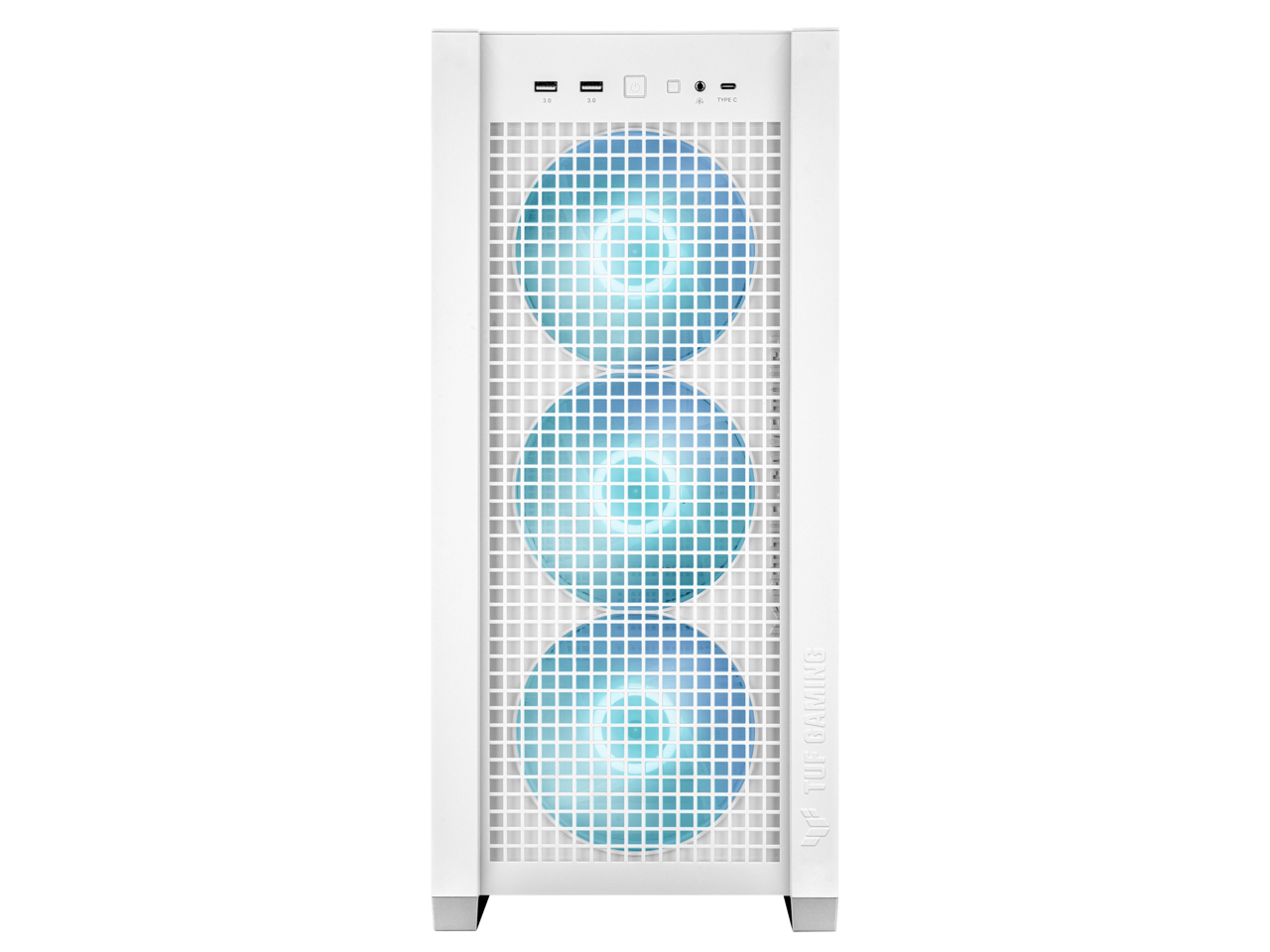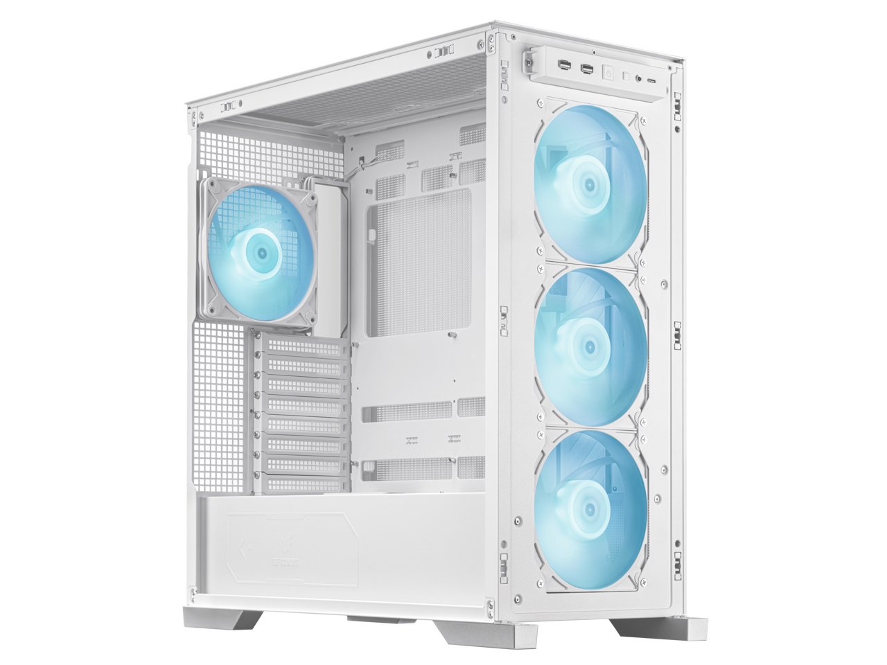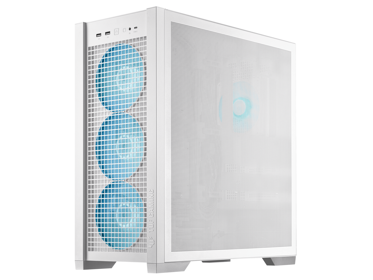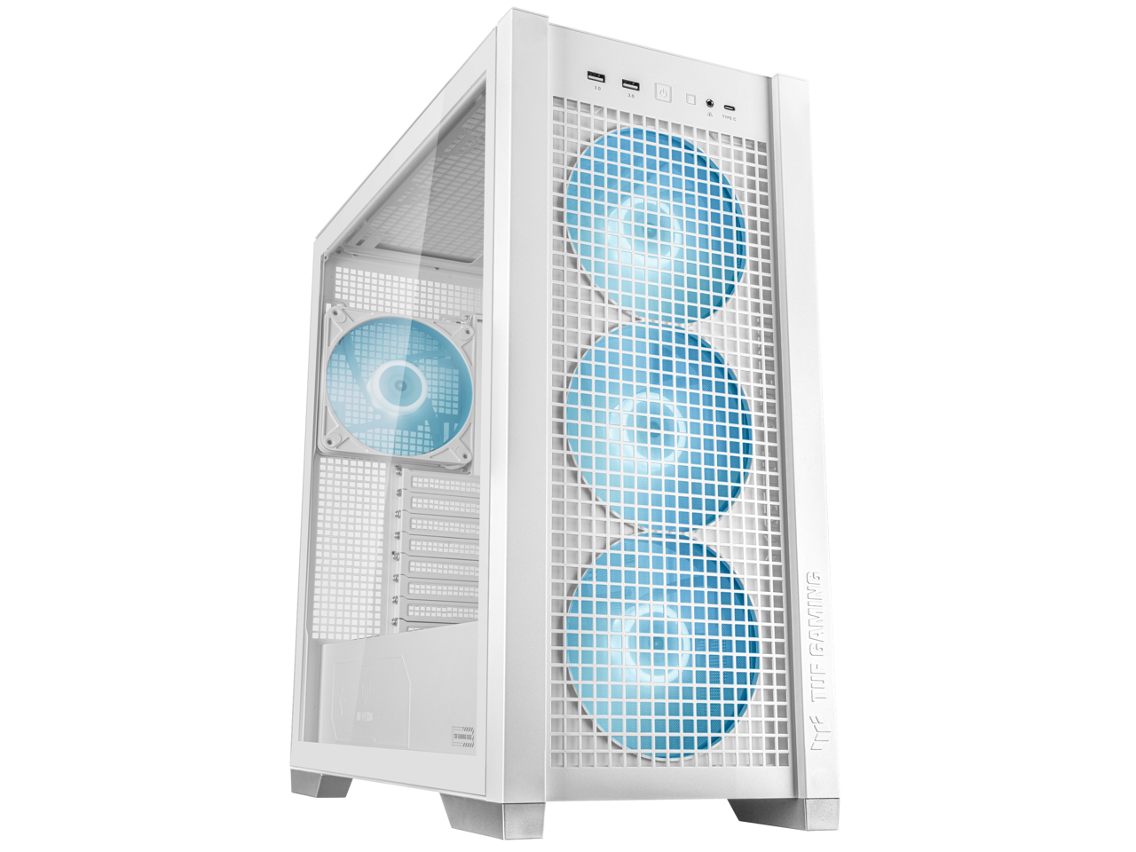 ASUS TUF Gaming GT302 ARGB White Edition ATX Mid-Tower Case Four 140 x 28 mm ARGB fans for high airflow and static pressure, interchangeable side panel, hidden-connector motherboard support