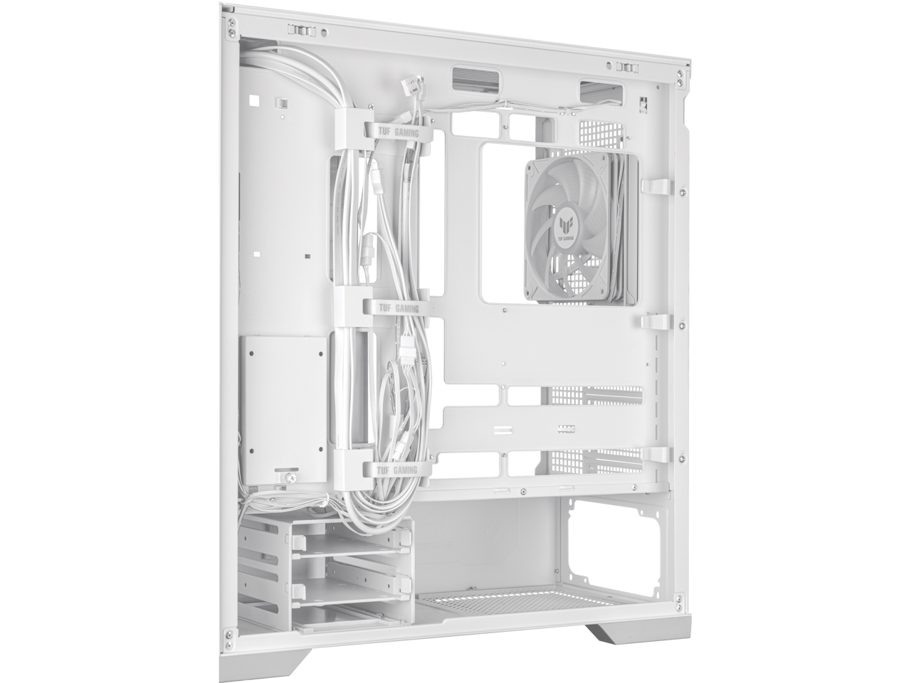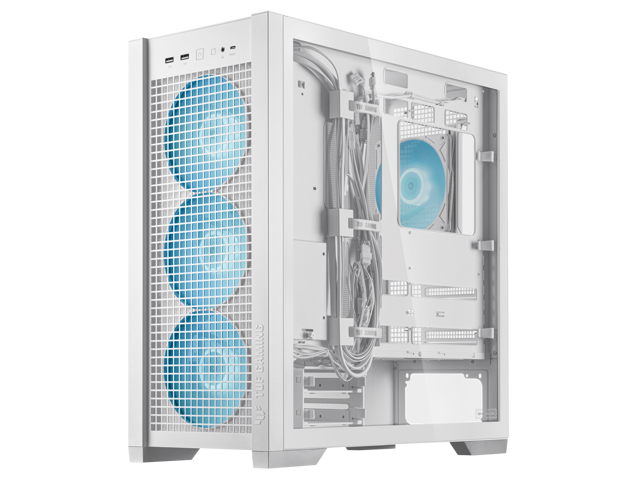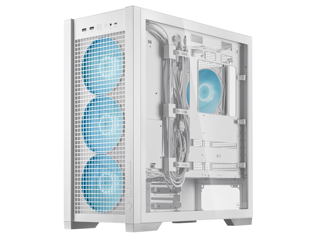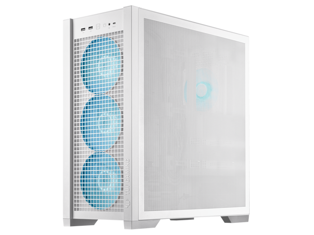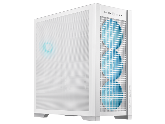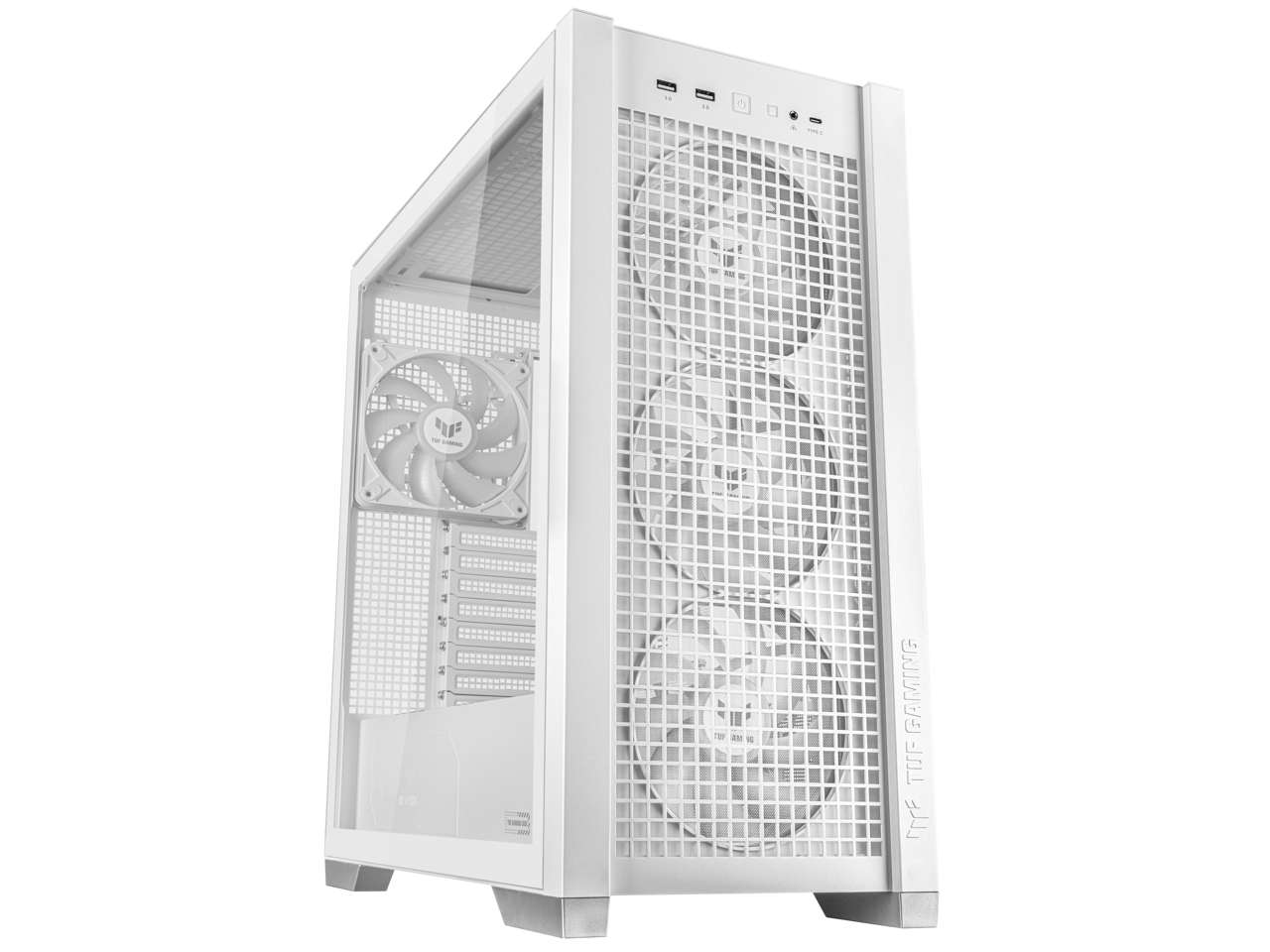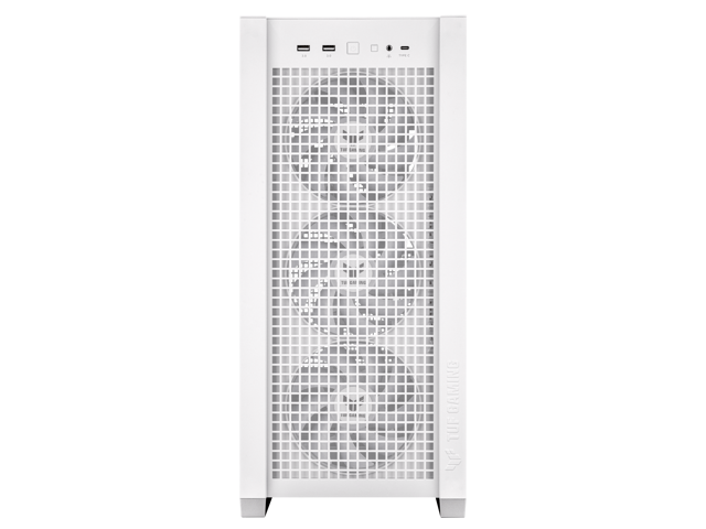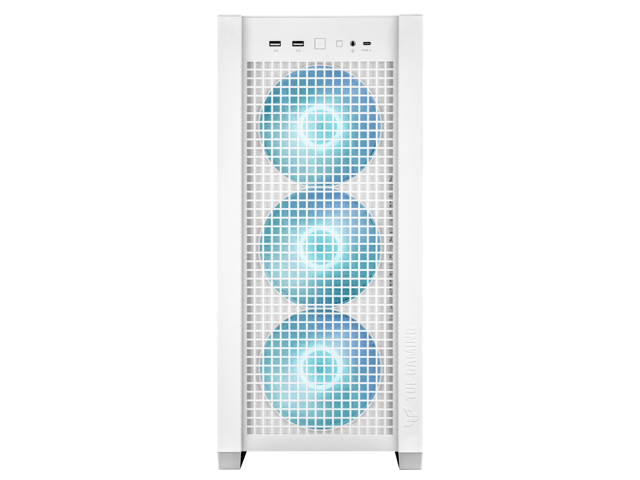 ASUS TUF Gaming GT302 ARGB White Edition ATX Mid-Tower Case Four 140 x 28 mm ARGB fans for high airflow and static pressure, interchangeable side panel, hidden-connector motherboard support