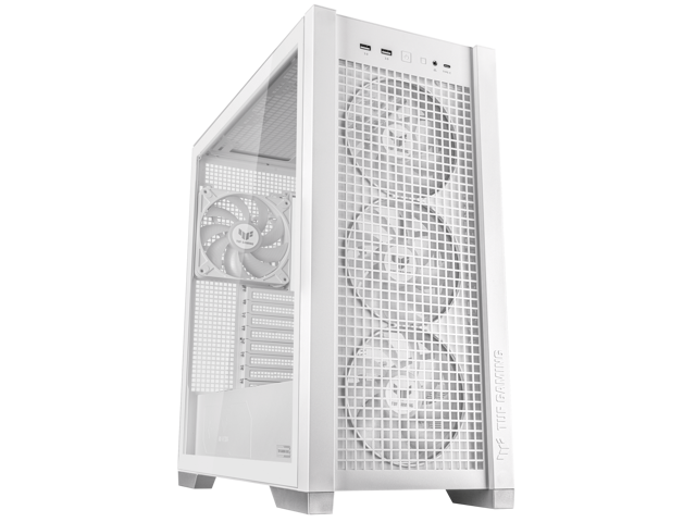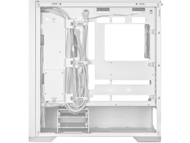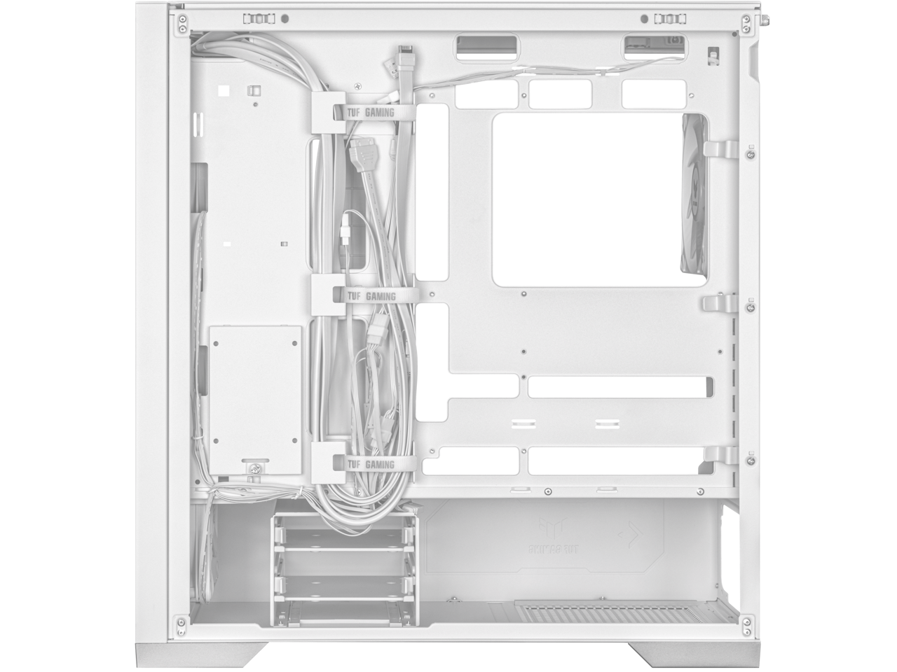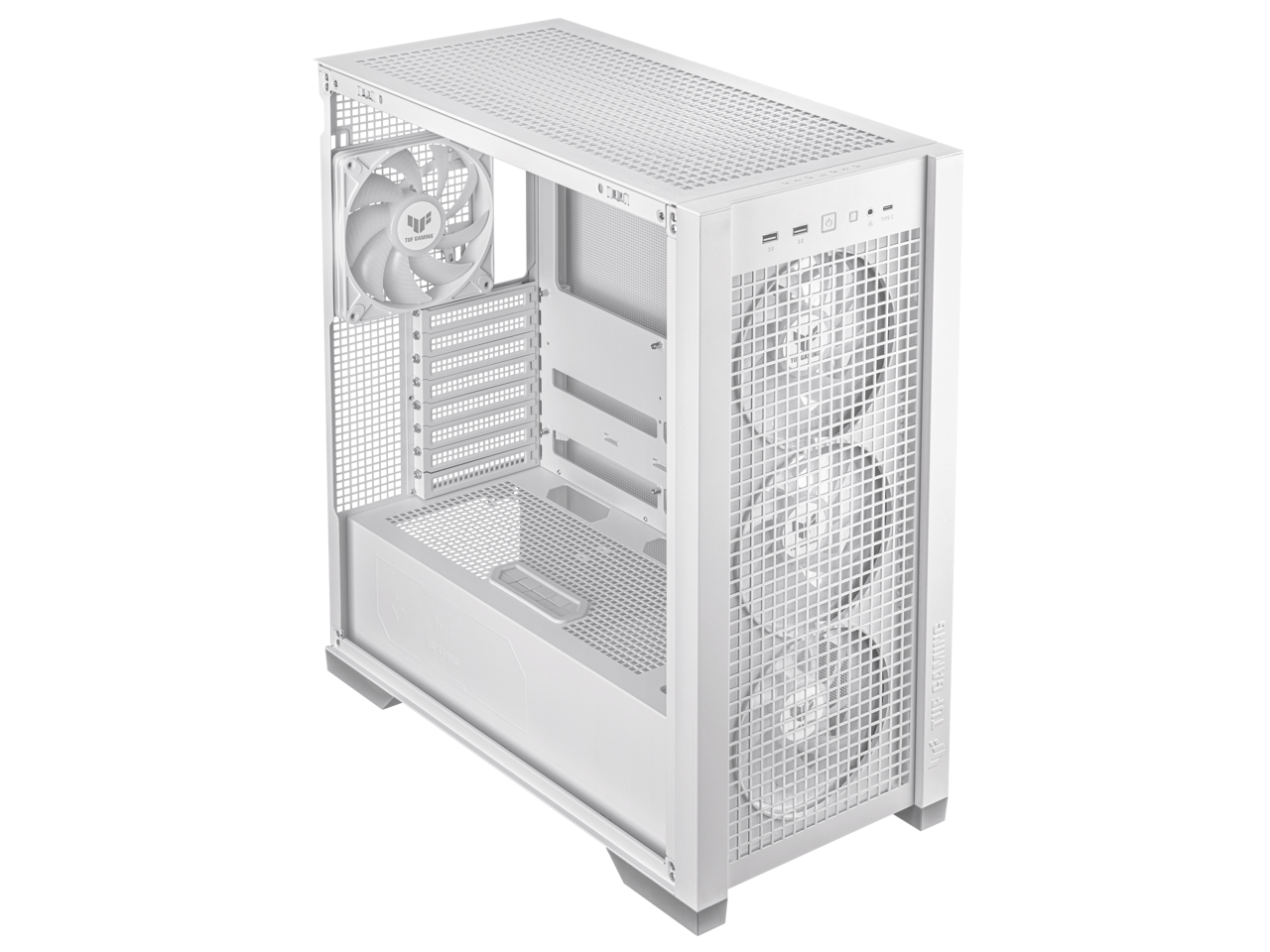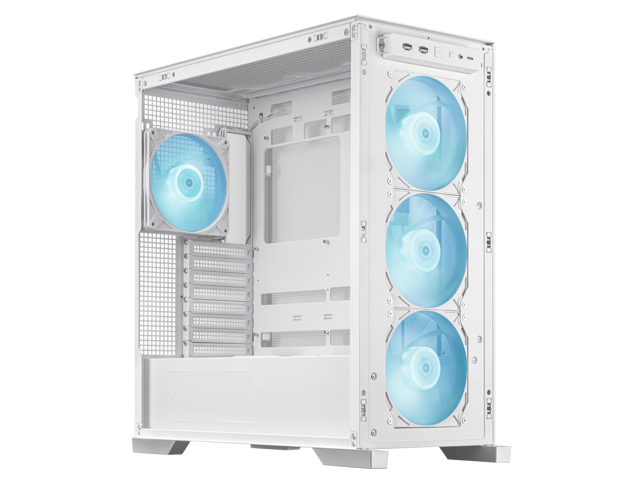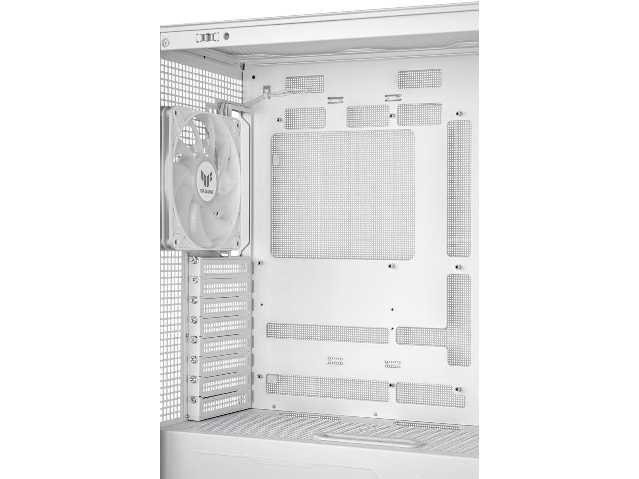 ASUS TUF Gaming GT302 ARGB White Edition ATX Mid-Tower Case Four 140 x 28 mm ARGB fans for high airflow and static pressure, interchangeable side panel, hidden-connector motherboard support