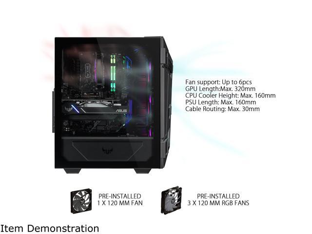 ASUS TUF Gaming GT301 Mid-Tower Compact Case for ATX Motherboards with Honeycomb Front Panel, 3 x 120mm AURA Addressable RBG Fans, Headphone Hanger, and 360mm Radiator Support, 2 x USB 3.2 Gen1 (USB 3.0) Prots
