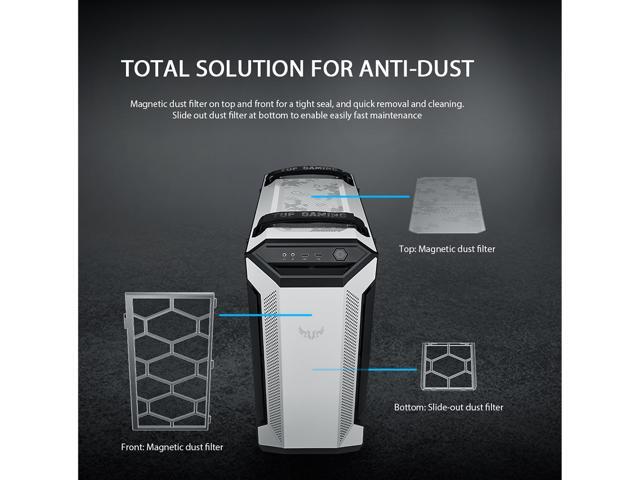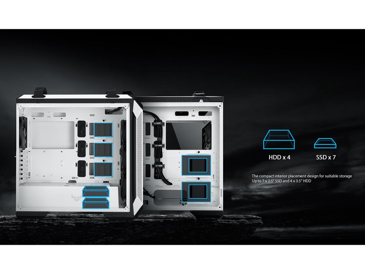 - Designed to be noticed: Metal front panel with custom TUF Gaming spatter pattern, and 4mm-thick, smoked, tempered-glass side panel to showcase your build’s internals.