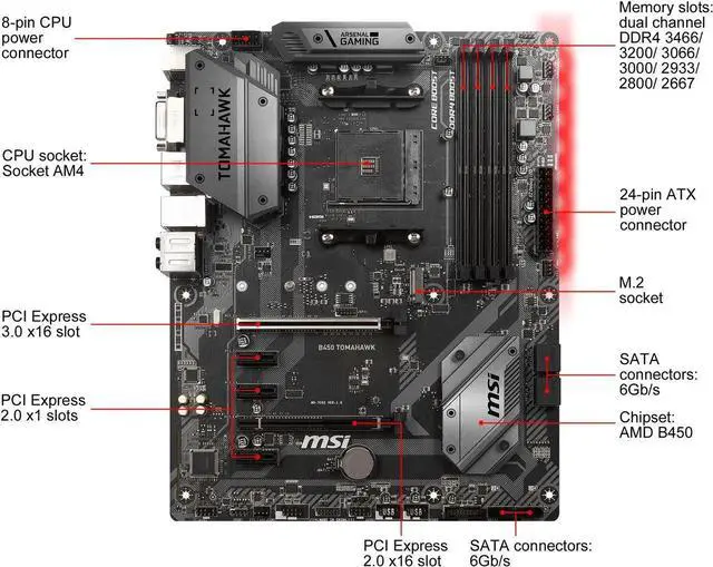 ASUS B450-TOMAHAWK Socket AM4 AMD B450 DDR4 64GB ATX Motherboard