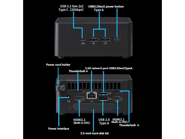ASUS NUC 14 Pro RNUC14RVHU700000I Core Ultra 7 155H, Intel ARC Graphics, 64GB RAM 2TB SSD, Support 8K/4K Quad Display/Wifi 6E/Bluetooth 5.3/Thunderbolt 4