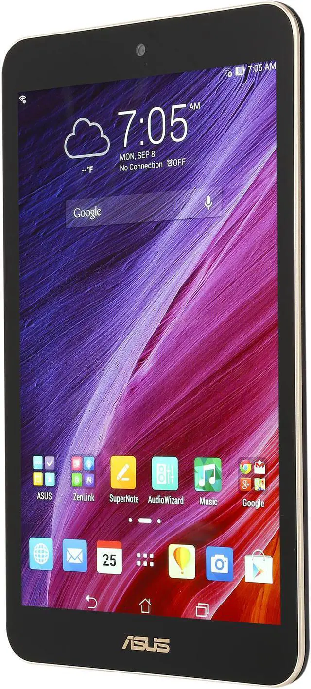 The ASUS MeMO Pad 8 has a slim body with a thickness of only 8.3mm. It fits perfectly in your hand, and weighs only 320g. It lets you express your individuality with colors ranging from traditional black or white, to more flashy hues like purple and gold.
