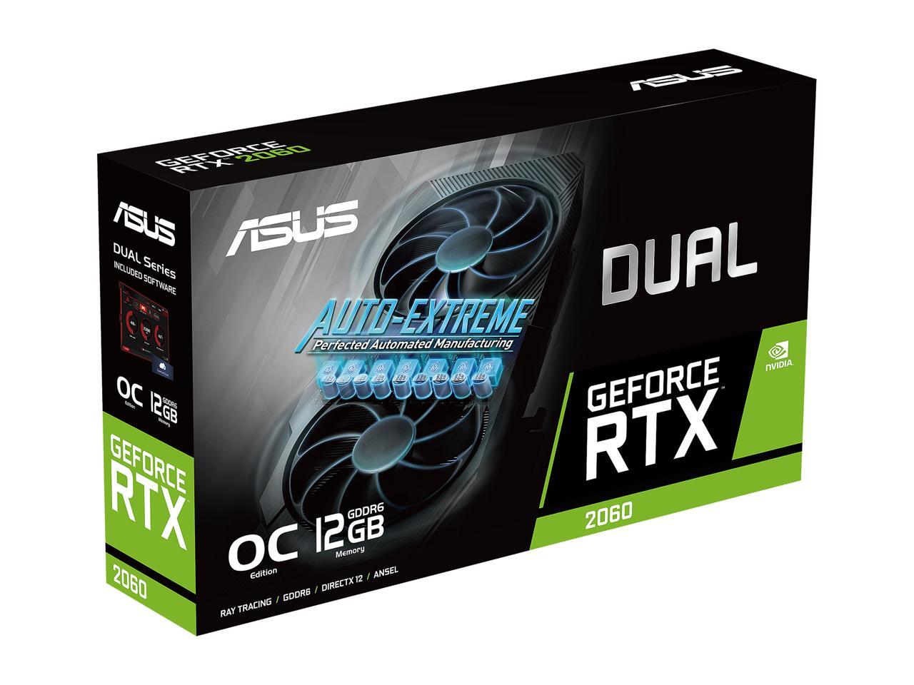ASUS Dual GeForce RTX 2060 EVO OC Edition Graphics Card (PCIe 3.0, 12GB GDDR6, HDMI, DisplayPort, DVI-D, Axial-tech Fan, 0dB Technology, Auto-Extreme) DUAL-RTX2060-O12G-EVO