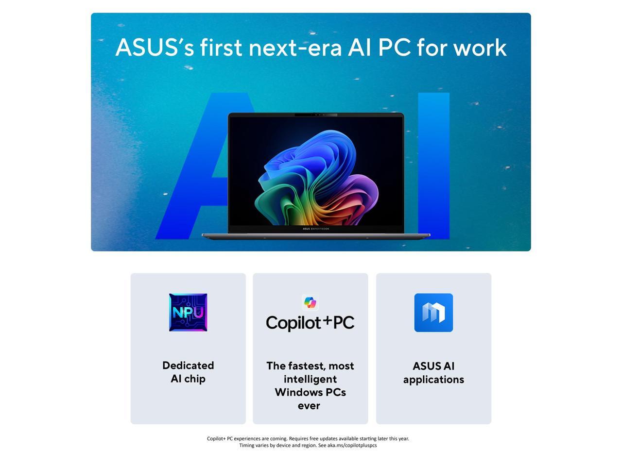 ASUS ExpertBook P5 Copilot+ PC AI Laptop, Intel® Core 7 Processor 258V, 32GB RAM, 1TB SSD, WiFi 6E, Windows 11 Home, Misty Grey, P5405CSA-DH76